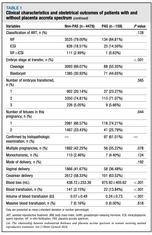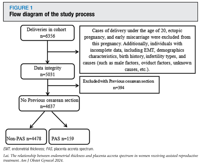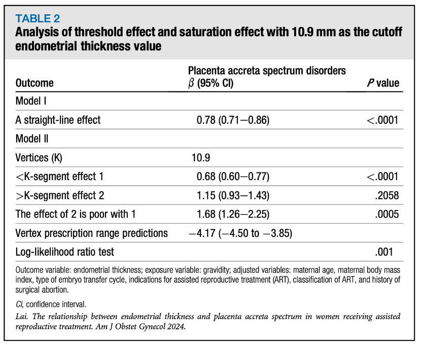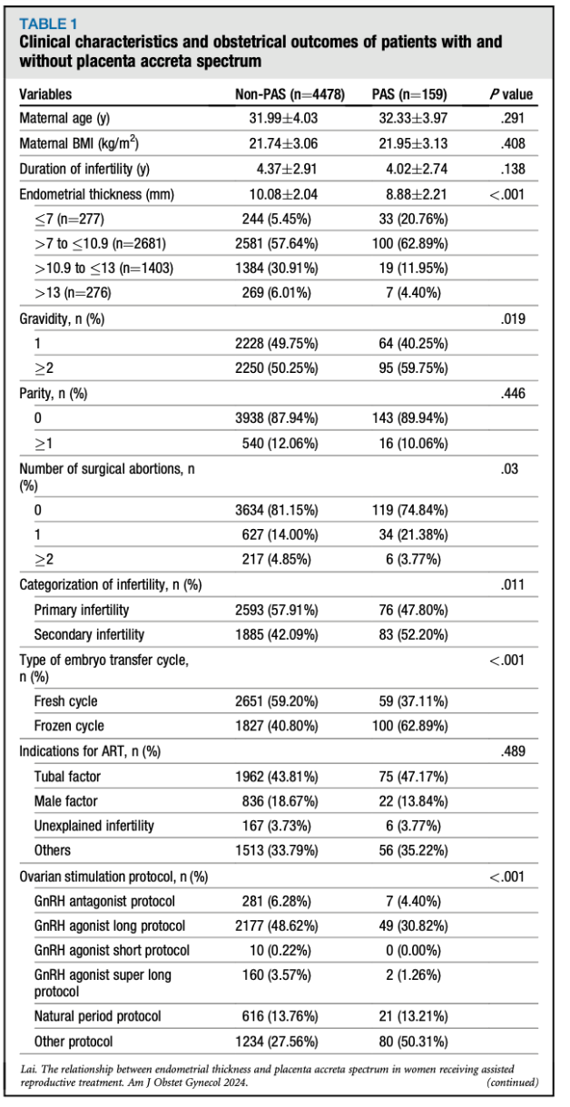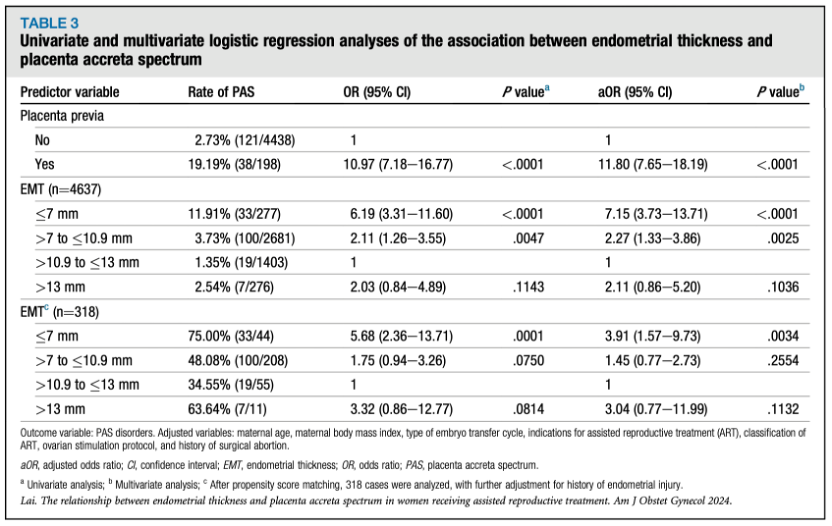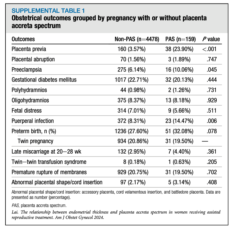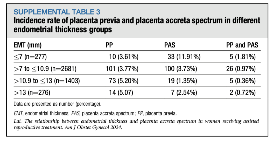 英文标题:A sonographic endometrial thickness <7 mm in women undergoing in vitro fertilization increases the risk of placenta accreta spectrum