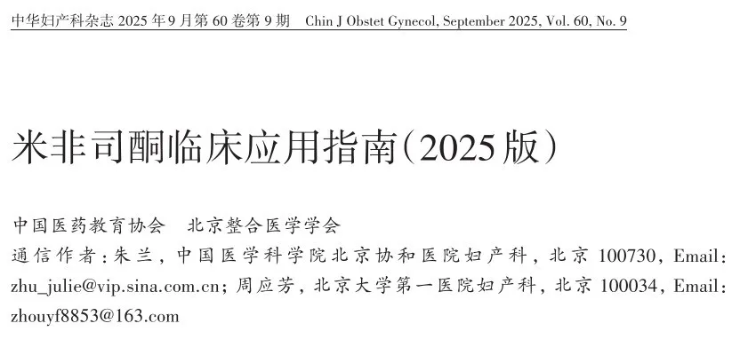 文章来源:中国医药教育协会,北京整合医学学会. 米非司酮临床应用指南(2025版)[J]. 中华妇产科杂志,2025,60(09):665-686.DOI:10.3760/cma.j.cn112141-20250609-00265