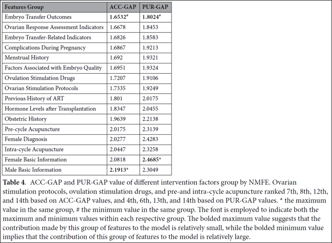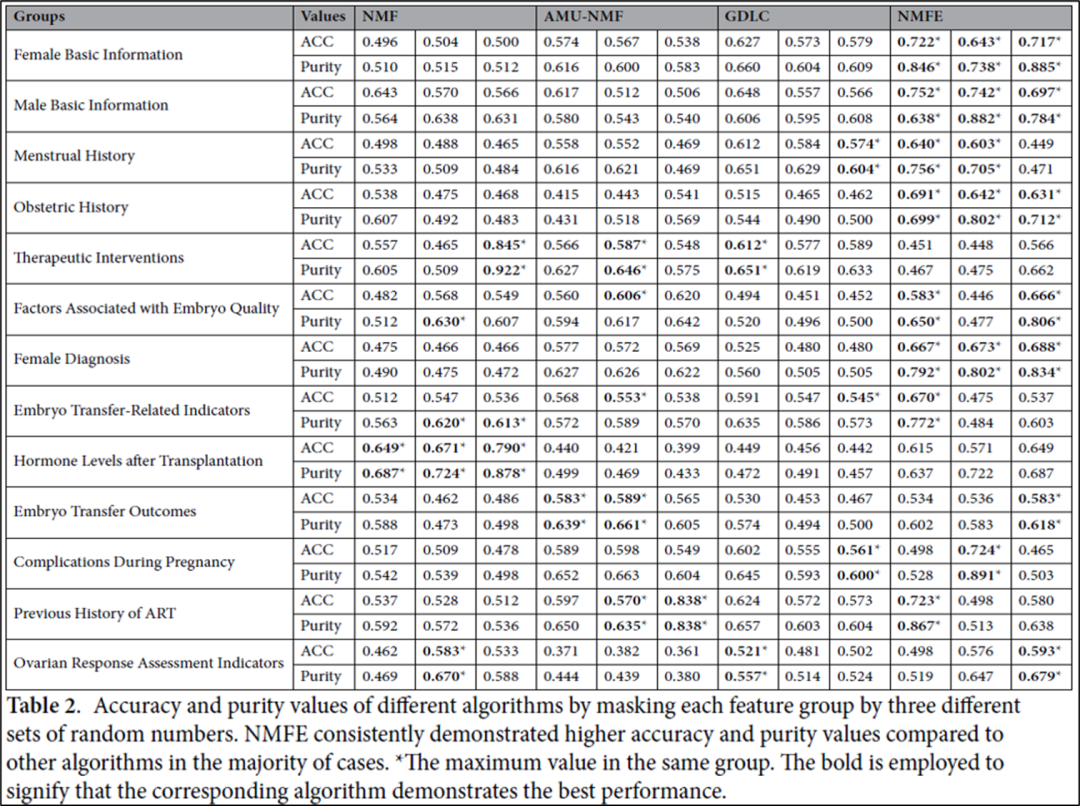 AI解码「一击即中」——聚类算法首次锁定IVF鲜胚活产“命运开关”发表时间:2025-09-01 15:14 Critical factors influencing live birth rates in fresh embryo transfer for IVF: insights from cluster ensemble algorithms 影响IVF新鲜移植后活产率的关键因素:聚类集成算法 ![]() ![]() 不孕症已成为一个重大的全球健康问题。辅助生殖技术(ART)虽然帮助很多的不孕夫妇受孕,但仍有一些反复失败的周期。本研究旨在探究影响IVF新鲜胚胎移植着床率的关键临床因素。 本文采用了一种新型的基于非负矩阵分解(NMF)的集成算法(NMFE),通过整合来自非负矩阵分解(NMF)的特征矩阵、用于非负矩阵分解的加速乘法更新(AMU-NMF)以及广义深度学习聚类(GDLC)算法。NMFE分析在体外受精和胚胎移植的数据上有着出众的准确性和可靠性。数据包含了2238个周期和85个独立的临床特征,再根据特征相关性分为13类。随后,训练NMFE模型并达到收敛。随后对13个类别的特征依次进行遮蔽,以分析它们各自对IVF-ET活产的影响。NMFE分析揭示治疗干预措施、胚胎移植效果及卵巢反应评估对IVF-ET活产率的显著影响。 特别值得注意的是,包含卵巢刺激方案、促排卵药物使用以及刺激周期前后针灸治疗在内的治疗干预措施具有关键作用,但其在NMFE模型中的影响权重呈现弱化趋势,提示联合应用时可能产生协同效应。需特别指出的是,基础信息、诊断结果及产科史等因素的影响相对有限。该NMFE算法在评估临床特征对IVF新鲜胚胎移植活产率的影响方面展现出良好的应用前景。 ![]() ![]() 不同算法之间的对比 本文将NMFE与一些众所周知的可靠算法进行了比较,比较的算法分别有:NMF、AMU-NMF、MCLA和EREC。将准确率(ACC)和纯度(PUR)值作为评估不同算法性能与有效性的指标。算法的准确率越高,正确预测的比例就越高;纯度越高,表明实例准确分类的百分比越高。准确率和纯度在NMFE中分别为0.7912和0.8605,高过了其他的算法模型。这表明了NMFE更有效。(表1;图1) ![]() 影响因素的等级分析 本研究扩展了分析,以比较NMF、AMU-NMF、GDLC和NMFE算法的有效性。原始数据在经过三组不同随机数随机遮蔽后,在大多数情况下NMFE始终展示出高于其他算法的准确率和纯度(表2)。 ![]() 为了进一步研究特定特征组对IVF-ET模型的影响,本文用随机数字遮蔽了如治疗干预、胚胎移植结局和卵巢反应评估指标等数据。这一操作使得IVF-ET模型的整体准确率显著下降,表明了这些特征组对模型有着实质性的影响。 将各特征组对IVF-ET结局的影响量化,本研究将经过三组随机数字遮蔽的数据的准确率和纯度相加来计算ACC-GAP和PUR-GAP值。这些间隙(GAP)的计算值越小,表明该特征组对模型的稳健性影响越强,且对IVF-ET结局的作用越显著(表3;图2)。 ![]() ![]() 在所有特征组中,治疗干预措施的ACC-GAP和PUR-GAP值最小,表明其对模型贡献最为关键。 根据影响分析结果,我们确定了影响IVF-ET结局的前五组:治疗干预措施、胚胎移植结局、卵巢反应评估指标、胚胎移植相关指标及妊娠期并发症。在治疗干预措施组中,卵巢刺激方案、促排卵药物使用以及周期前及周期内针灸治疗等因素的影响尤为突出。为深入探究各治疗方案对IVF-ET结局的具体作用,我们针对每项干预因素进行了独立分析(表4;图3)。 ![]() ![]() 进一步对治疗干预措施组的临床特征进行单独分析时,我们发现其内部影响因素排名发生了变化:促排卵药物影响力降至第七位,卵巢刺激方案降至第八位,而针灸治疗的排名更为靠后。这一变化是否暗示多种疗法间的协同效应,仍需后续研究验证。 |
